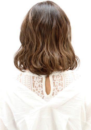 コタスタイリングベースでコンディションを整えてパーマの質感を活かすようにコタスタイリングリッジミルクを付けて動きと質感を出しています。