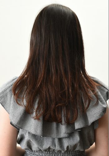 艶を出すようにブローをして毛先にカールを出すようにアイロンで動きを出しました。仕上げにコタスタイリングスプレーGLで艶感を出しています。