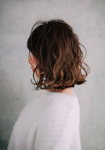 コタスタイリングB-3を付けてドライ後ナチュラルに外ハネになるようにコテで動きを出してリッジミルクで動きを出しています。