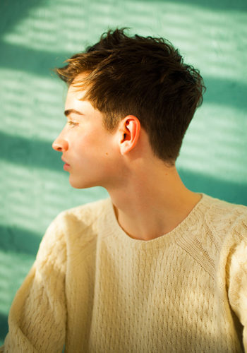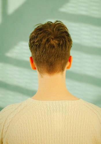 襟足はスッキリ揃えて爽やかに、顔まわりは長めに残して無造作に動きをだしたスタイリングに。