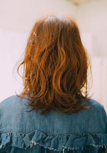 ナチュラルドライ後コタスタイリングリッジミルクを揉みこんで動きを出しています。
