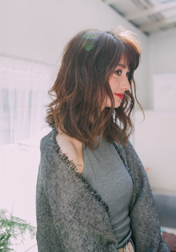 コタスタイリングB-1でナチュラルドライ後動きを出すように乾かしてコタスタイリングリッジミルクをもみ込んで柔らかい質感にしています。