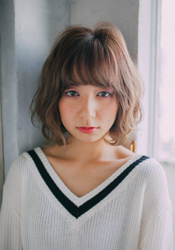 ボブにカットし少し空気感が出るように明るめのカラー、パーマでくしゅくしゅ揉みこむと可愛らしさ全開!